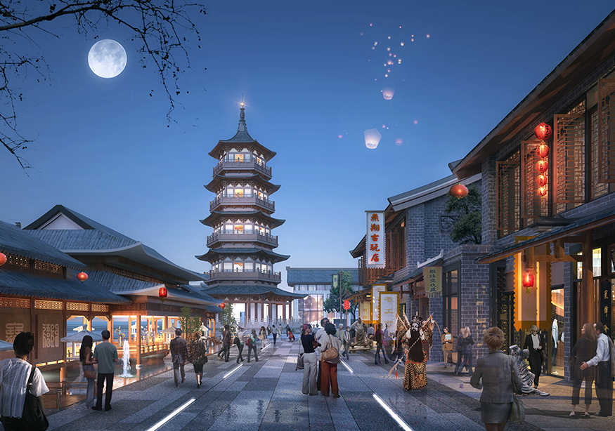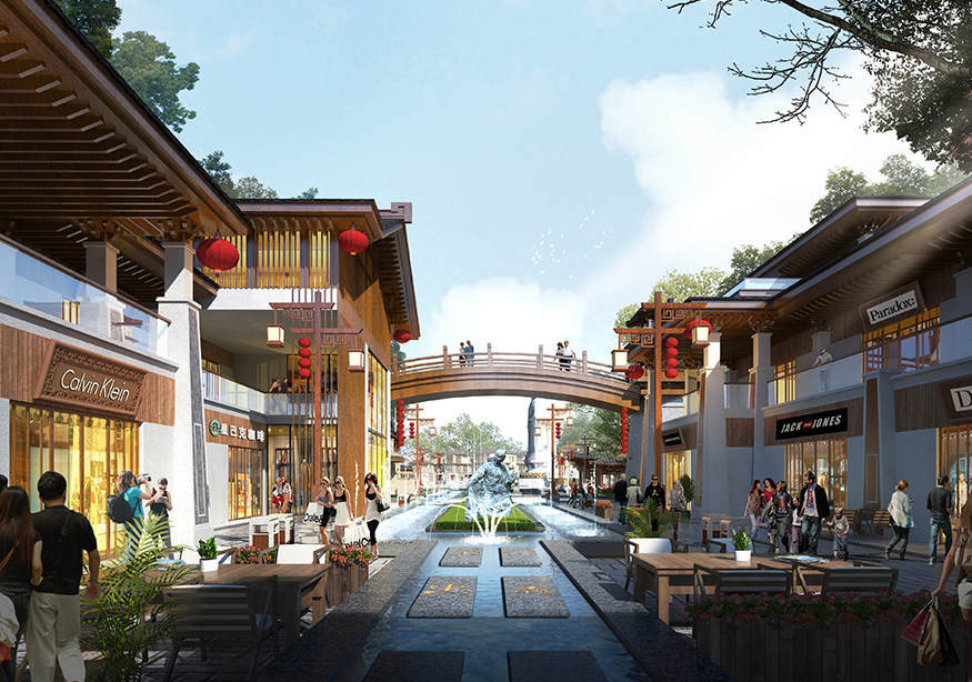 ? ? 文化商業(yè)街的設(shè)計頗具匠心,從入口處開始,至文化商業(yè)街出口處結(jié)束,整個用關(guān)羽輝煌起伏的一生為時間線進行貫穿。如果說整條街區(qū)是關(guān)羽在世生而仁、仁而勇、勇而義、義而忠的再現(xiàn),那么從街區(qū)的出口處就是關(guān)羽侯而王、王而帝、帝而圣、圣而天文化升華的開始。讓體驗者通過關(guān)公精神,體驗現(xiàn)代旅游綜合商業(yè)區(qū),建設(shè)一個集餐飲休閑、旅游度假為一體的傳統(tǒng)古典園林式的商業(yè)綜合體。